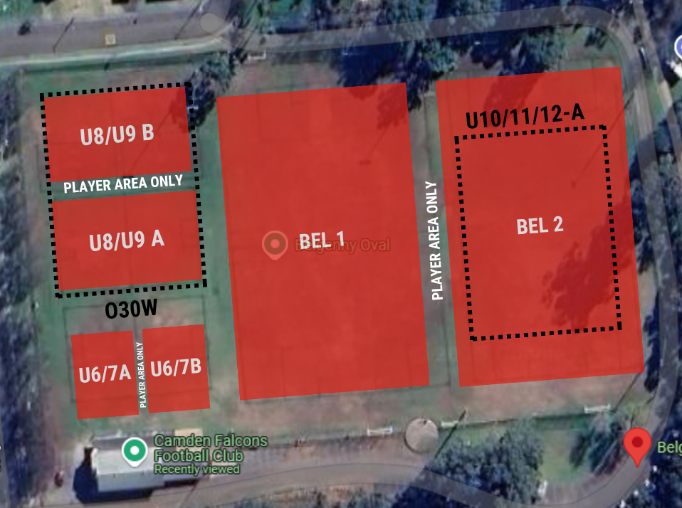 We’re excited to have you here at Belgenny Reserve, Home of the Camden Falcons. To find your field, please check the map below.
