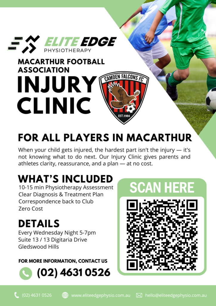 As a proud member of the Macarthur football community, Elite Edge Physiotherapy is committed to supporting the health and wellbeing of local players. As part of this commitment, they are offering a Free Injury Clinic available to all players within the Macarthur Football Association.
